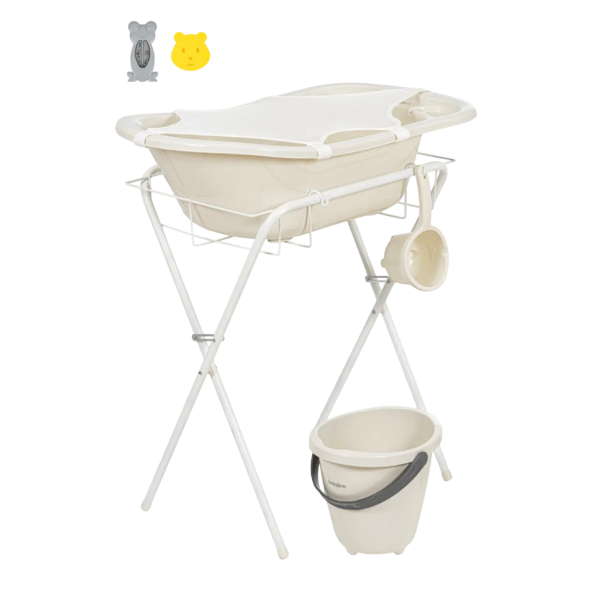 بيبي جيم بانيو ستاند 7 حبة بيج 89704 مجموعة متكاملة للعناية بالطفل أثناء الاستحمام، تشمل حوض الاستحمام وحامل مستلزمات الأطفال ومقاعد داعمة لتوفير الراحة والأمان. تصميم عملي يسهّل تخزين الأدوات وتنظيمها مع خامات آمنة وسهلة التنظيف. متوفرة الآن في معرض دانية للألعاب.