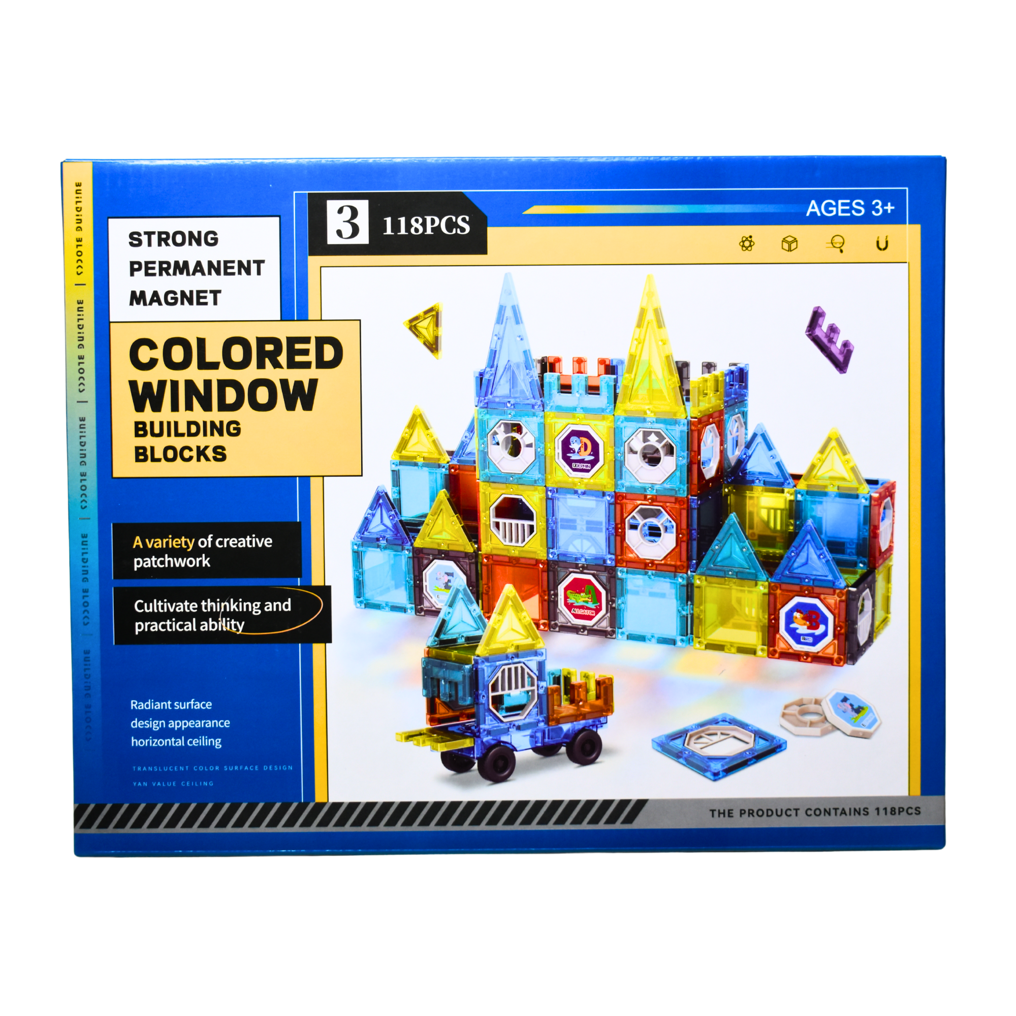 118 قطعة مغناطيسية متنوعة لبناء أشكال وهياكل لا نهائية.