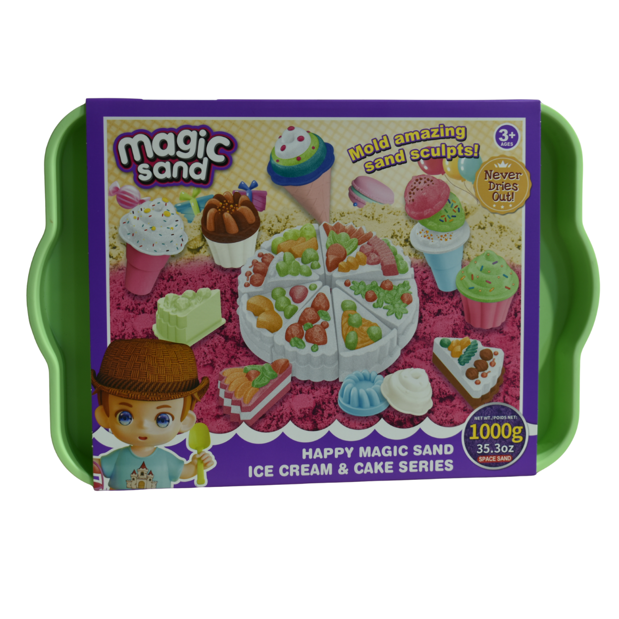 طقم الرمل السحري بوزن 1000 غرام مع قوالب الكيك وصندوق بلاستيك هو لعبة إبداعية ممتعة تمنح الأطفال تجربة لعب حسّية فريدة. يتميز الرمل السحري بقوامه الناعم وسهولة تشكيله دون أن يلتصق باليدين، مما يسمح للأطفال بصنع أشكال كيك وحلويات متنوعة بكل سهولة. يساعد هذا الطقم على تنمية الخيال والإبداع والمهارات الحركية الدقيقة، كما يأتي مع صندوق بلاستيكي عملي للحفظ والتنظيم وسهولة الحمل.