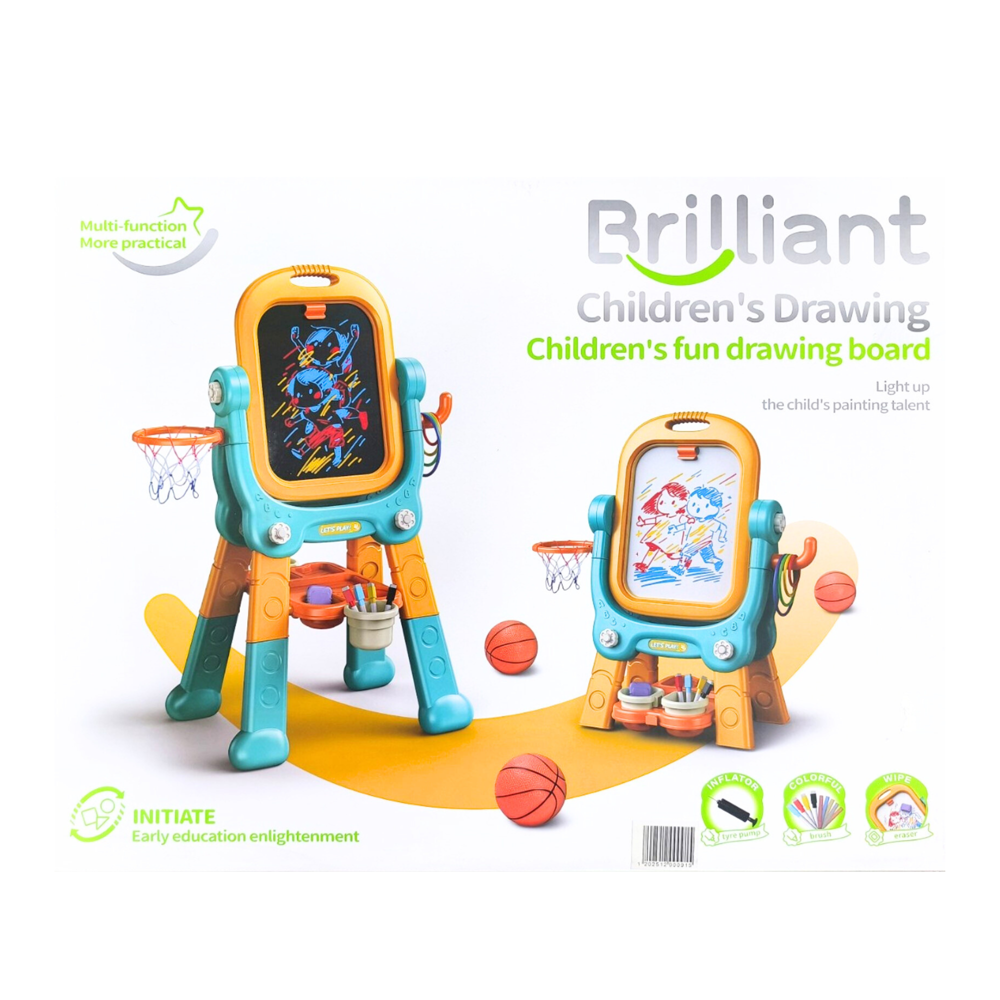 مجموعة Drawing Board + Basketball Set هي لعبة متعددة الوظائف تجمع بين الإبداع والنشاط البدني في منتج واحد. تتيح للأطفال الاستمتاع بالرسم والكتابة على لوح الرسم، إلى جانب ممارسة لعبة كرة السلة المصغّرة التي تساعد على تفريغ الطاقة بطريقة ممتعة. تم تصميم المجموعة لتعزيز المهارات الذهنية والحركية معًا، مما يجعلها خيارًا مثاليًا لتنمية الإبداع، التركيز، والتنسيق الحركي لدى الأطفال في بيئة آمنة ومسلية.