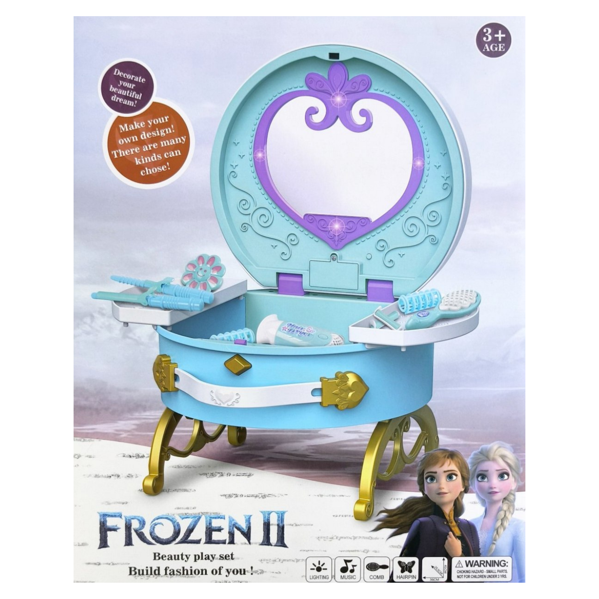 طاولة التزيين Lighting & Music Dressing Table (Frozen) هي لعبة مميزة مصممة خصيصًا للأطفال، تجمع بين الأناقة والمرح في تجربة لعب تفاعلية مستوحاة من عالم Frozen. تتميز بإضاءة جذابة ومؤثرات موسيقية تضيف واقعية ومتعة أثناء اللعب، مما يشجع الأطفال على تقمص الأدوار وتنمية الخيال والإبداع. تساعد طاولة التزيين على تطوير المهارات الاجتماعية والحركية الدقيقة، وتعد خيارًا مثاليًا للعب التخيلي داخل المنزل أو كهدية مميزة.