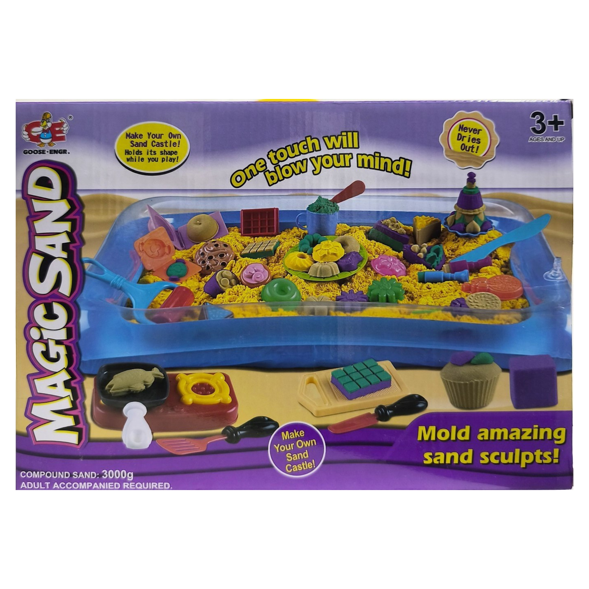 رمل سحري ناعم وسهل التشكيل مع حوض عملي يمنح الأطفال متعة لعب إبداعية ونظيفة لساعات طويلة.