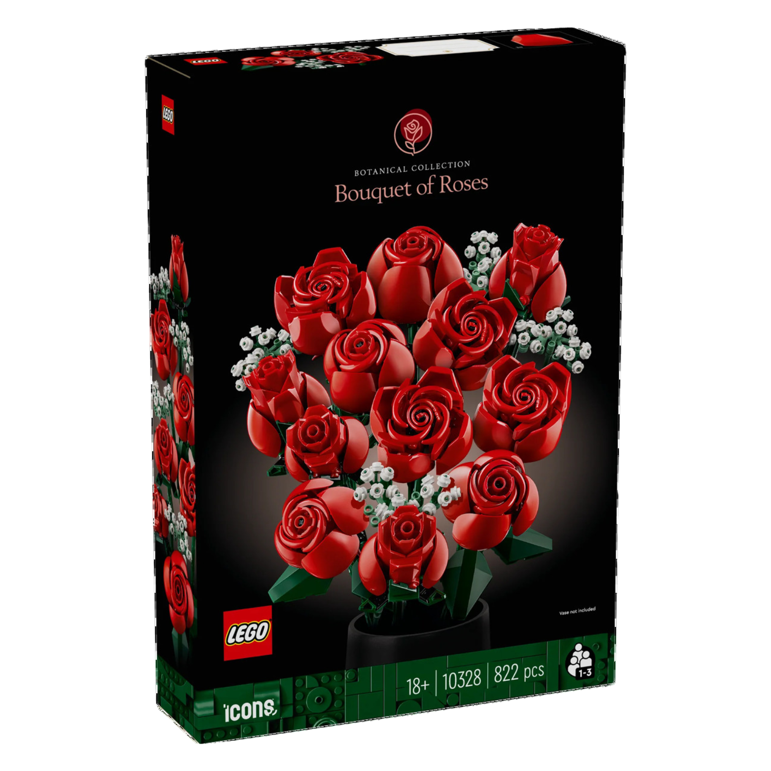 LEGO 10328 Bouquet of Roses مجموعة بناء فاخرة تقدم باقة ورود حمراء أنيقة بتصميم واقعي يضفي لمسة رومانسية راقية على أي مساحة.