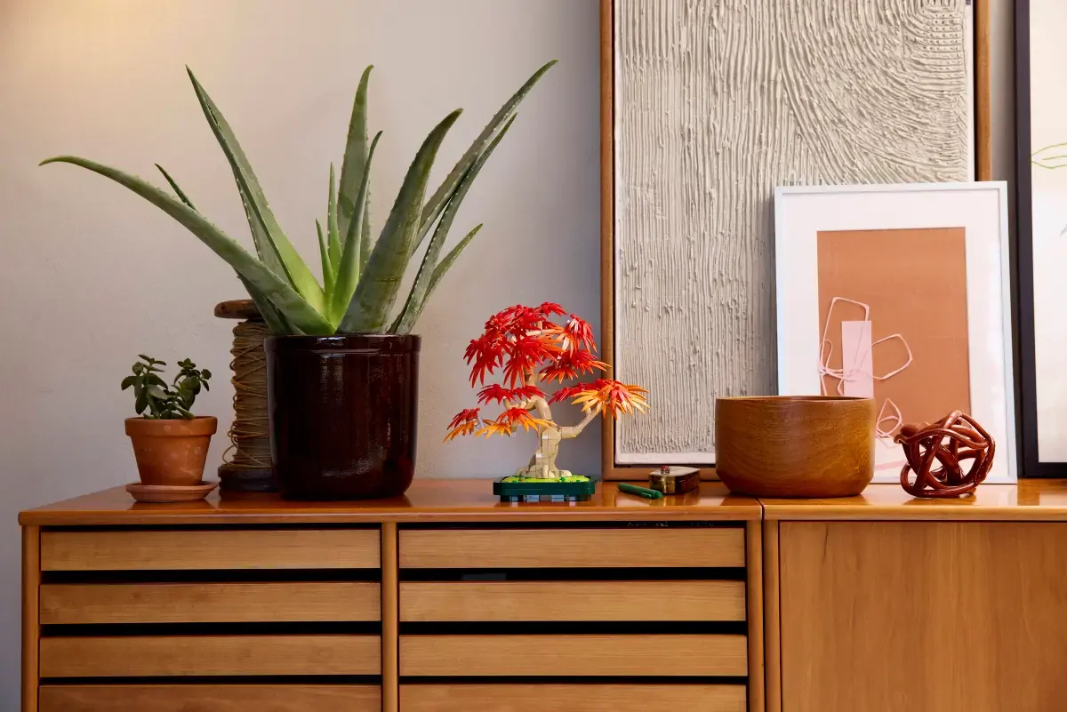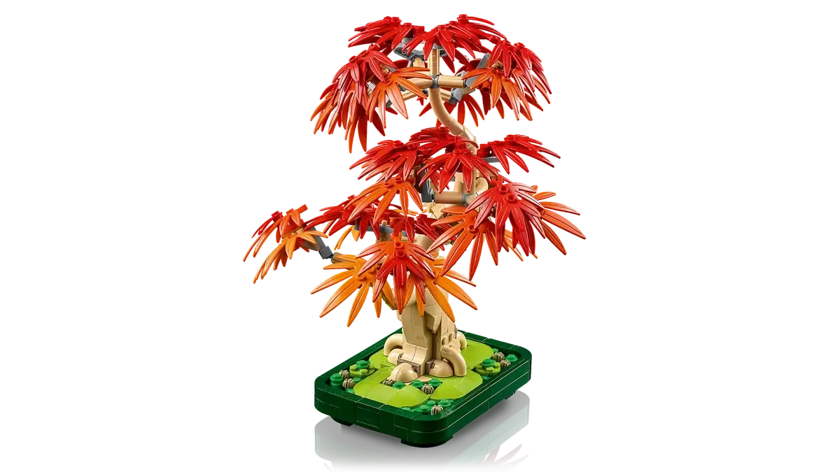 مجموعة ليغو مستوحاة من شجرة بونساي يابانية حمراء بتصميم واقعي وجميل.