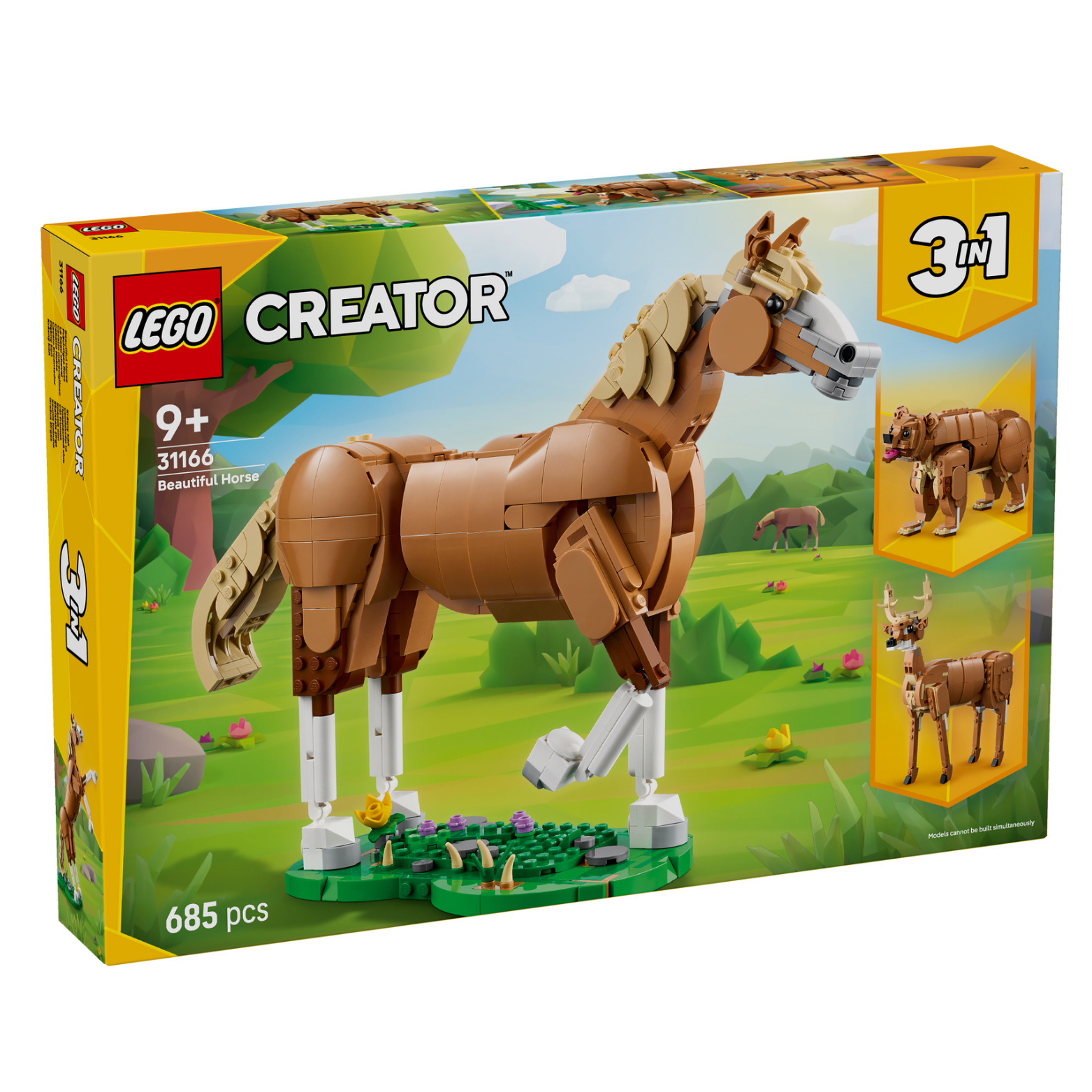طقم LEGO 31166 Beautiful Horse هو مجموعة LEGO® Creator 3‑in‑1 لبناء حصان جميل بتفاصيل أنيقة وقابلة للحركة مع نماذج بديلة للحيوانات، ليمنح الأطفال تجربة بناء إبداعية وممتعة من عمر 7 سنوات فأكثر.